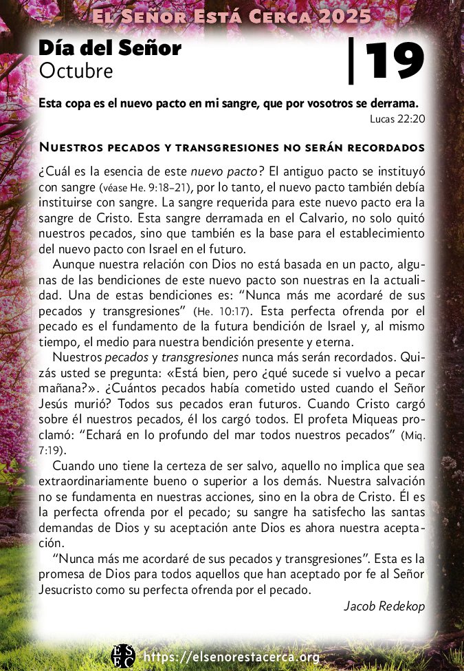 “Nunca más me acordaré de sus pecados y transgresiones”. Esta es la promesa de Dios para todos aquellos que han aceptado por fe al Señor Jesucristo como su perfecta ofrenda por el pecado.