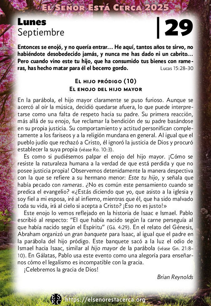 Este enojo lo vemos reflejado en la historia de Isaac e Ismael. Pablo escribió al respecto: “El que había nacido según la carne perseguía al que había nacido según el Espíritu” (Gá. 4:29). En el relato del Génesis, Abraham organizó un gran banquete para Isaac, al igual que el padre en la parábola del hijo pródigo. Este banquete sacó a la luz el odio de Ismael hacia Isaac, similar al hijo mayor de la parábola (véase Gn. 21:8–10). En Gálatas, Pablo usa este evento como una alegoría para enseñarnos cómo el legalismo es incompatible con la gracia.