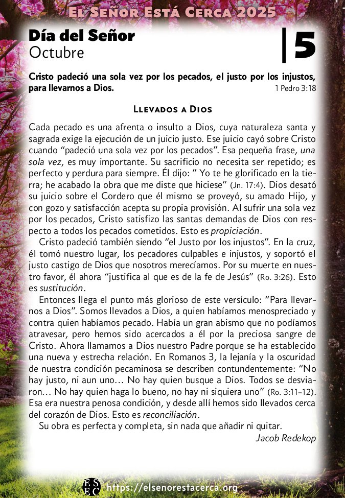 Cristo padeció una sola vez por los pecados, el justo por los injustos, para llevarnos a Dios. 1 Pedro 3:18