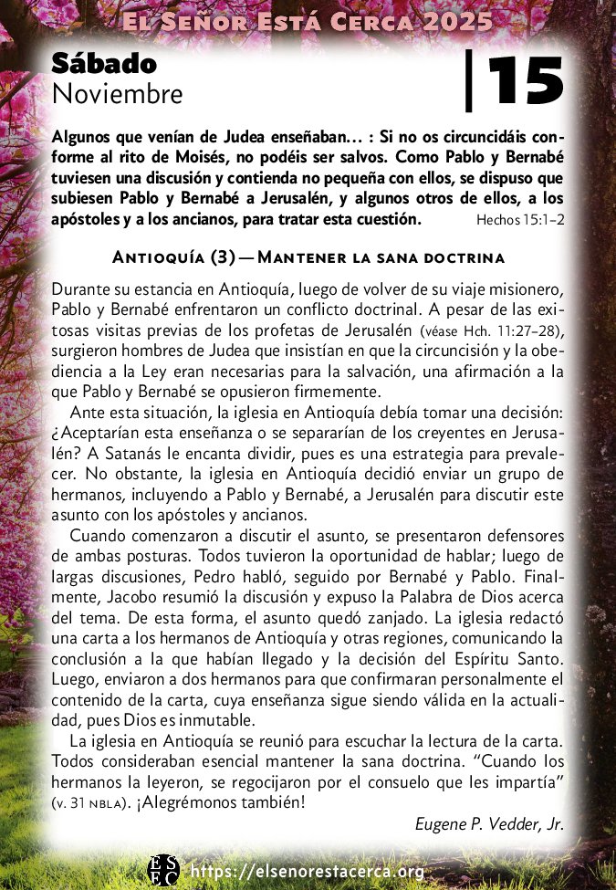 Algunos que venían de Judea enseñaban… : Si no os circuncidáis conforme al rito de Moisés, no podéis ser salvos. Como Pablo y Bernabé tuviesen una discusión y contienda no pequeña con ellos, se dispuso que subiesen Pablo y Bernabé a Jerusalén, y algunos otros de ellos, a los apóstoles y a los ancianos, para tratar esta cuestión. Hechos 15:1–2