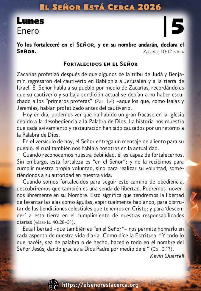 Cuando reconocemos nuestra debilidad, él es capaz de fortalecernos. Sin embargo, esta fortaleza es “en el Señor”; y no la recibimos para cumplir nuestra propia voluntad, sino para realizar su voluntad, sometiéndonos a su autoridad en nuestra vida.