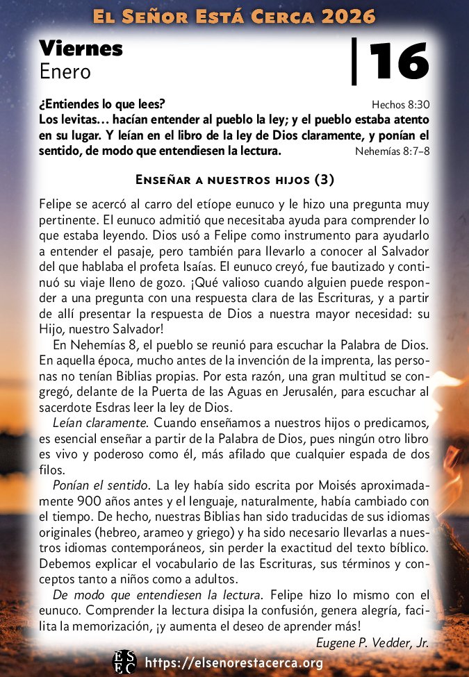 De modo que entendiesen la lectura. Felipe hizo lo mismo con el eunuco. Comprender la lectura disipa la confusión, genera alegría, facilita la memorización, ¡y aumenta el deseo de aprender más!