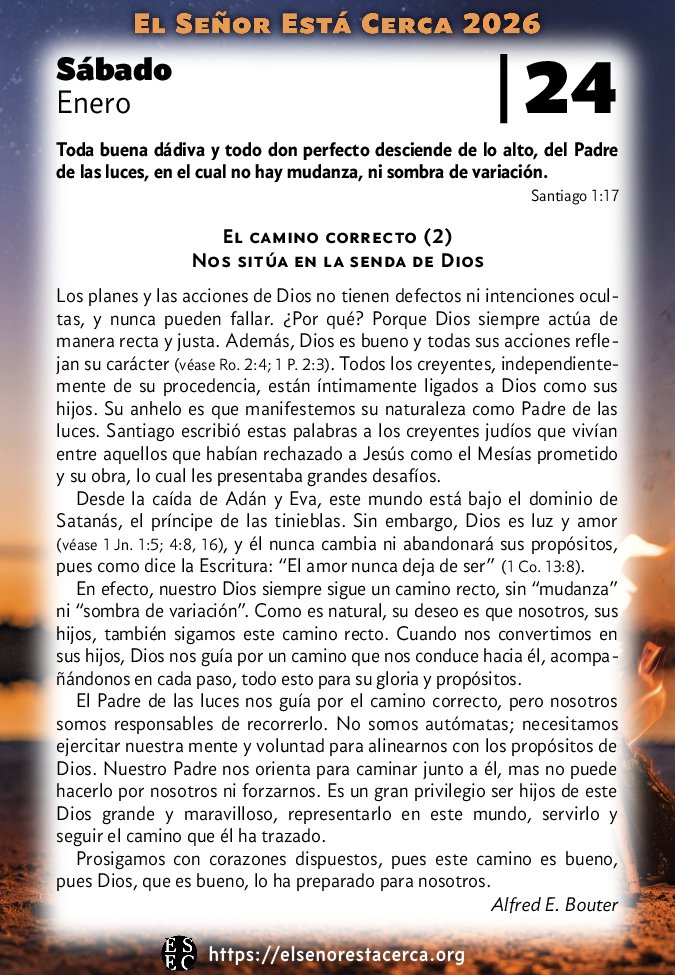 En efecto, nuestro Dios siempre sigue un camino recto, sin “mudanza” ni “sombra de variación”. Como es natural, su deseo es que nosotros, sus hijos, también sigamos este camino recto. Cuando nos convertimos en sus hijos, Dios nos guía por un camino que nos conduce hacia él, acompañándonos en cada paso, todo esto para su gloria y propósitos.