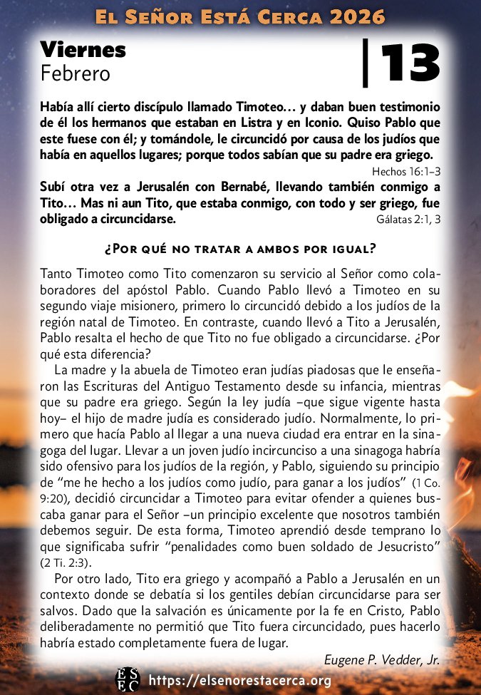 La madre y la abuela de Timoteo eran judías piadosas que le enseñaron las Escrituras del Antiguo Testamento desde su infancia, mientras que su padre era griego. Según la ley judía –que sigue vigente hasta hoy– el hijo de madre judía es considerado judío. Normalmente, lo primero que hacía Pablo al llegar a una nueva ciudad era entrar en la sinagoga del lugar. Llevar a un joven judío incircunciso a una sinagoga habría sido ofensivo para los judíos de la región, y Pablo, siguiendo su principio de “me he hecho a los judíos como judío, para ganar a los judíos” (1 Co. 9:20), decidió circuncidar a Timoteo para evitar ofender a quienes buscaba ganar para el Señor –un principio excelente que nosotros también debemos seguir. De esta forma, Timoteo aprendió desde temprano lo que significaba sufrir “penalidades como buen soldado de Jesucristo” (2 Ti. 2:3).