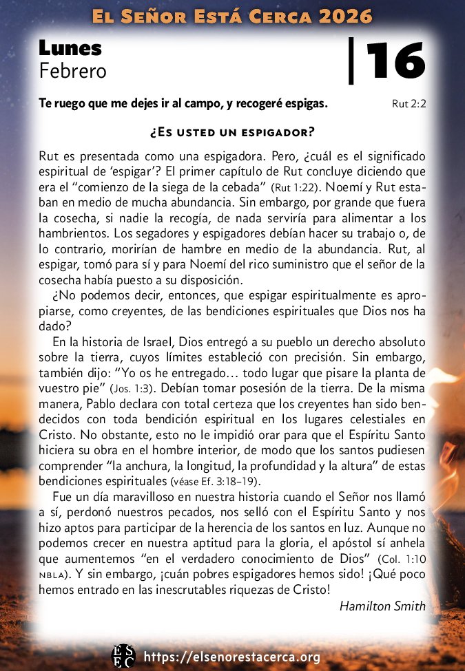 ¿No podemos decir, entonces, que espigar espiritualmente es apropiarse, como creyentes, de las bendiciones espirituales que Dios nos ha dado?