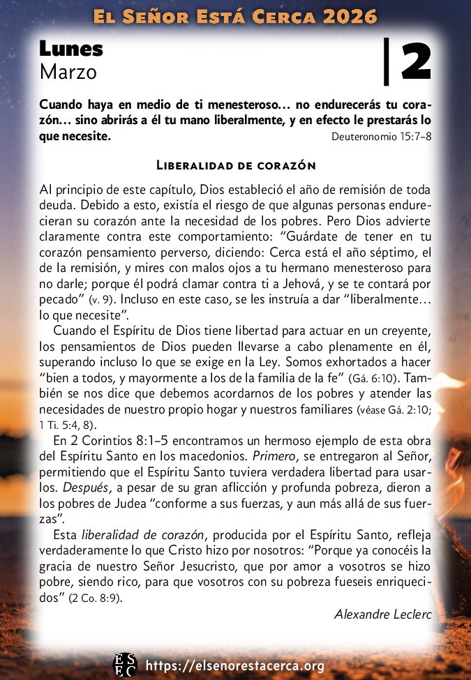 Esta liberalidad de corazón, producida por el Espíritu Santo, refleja verdaderamente lo que Cristo hizo por nosotros: “Porque ya conocéis la gracia de nuestro Señor Jesucristo, que por amor a vosotros se hizo pobre, siendo rico, para que vosotros con su pobreza fueseis enriquecidos” (2 Co. 8:9).