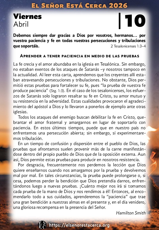 Debemos siempre dar gracias a Dios por vosotros, hermanos… por vuestra paciencia y fe en todas vuestras persecuciones y tribulaciones que soportáis. 2 Tesalonicenses 1:3–4
